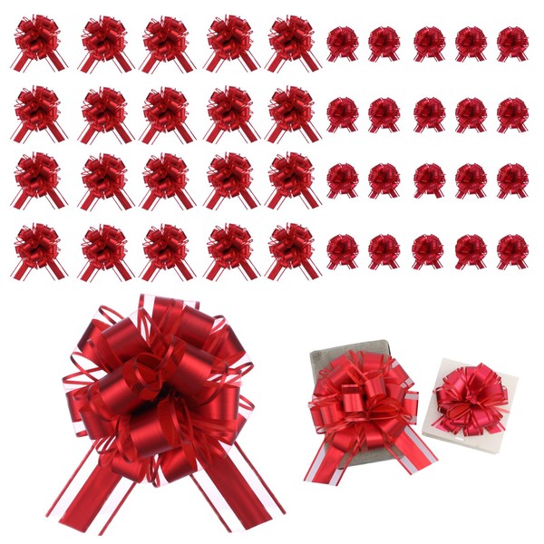 40 Pieces 6 Inches and 3 Inches Pull Bow Wrapping Pull Bow Ribbon Pull Bows for Wedding Baskets,Large Bows for Presents. (Red)