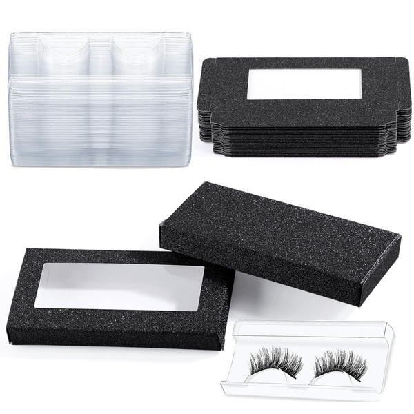 40 Pieces Lash Packaging Wholesale Empty Eyelashes Packaging Box and False Lash Trays, 20 Pieces Empty Eyelash Boxes Lash Box Packaging Empty with 20 Pieces Empty Eyelash Tray (Black)
