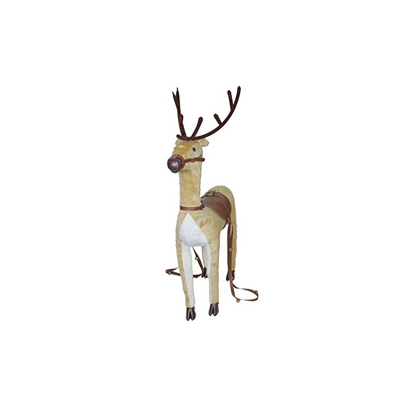 40" Plush Standing Reindeer Christmas Decoration with Saddle and Jingle Bells