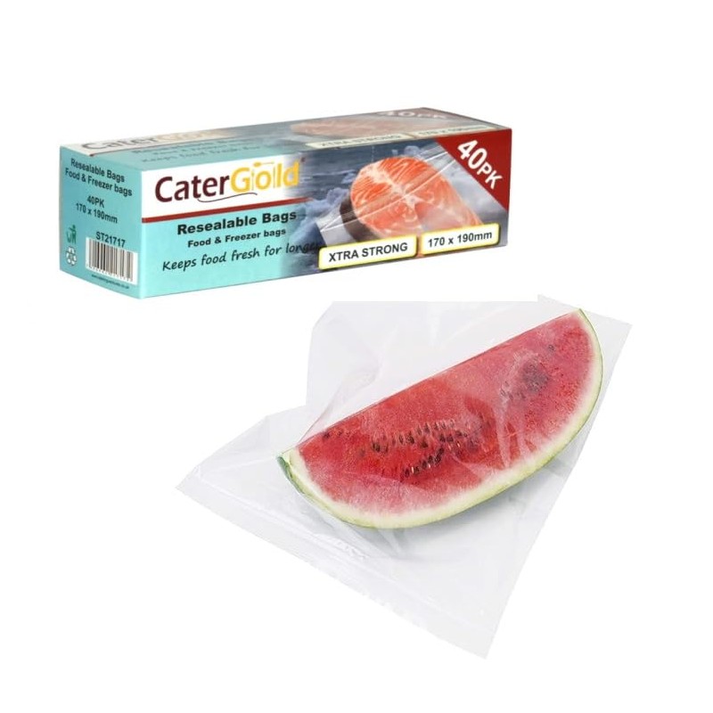 40 Resealable Large Freezer Bags - Airtight, Leakproof, and Reusable for Soup, Fruit, Veggies, and Snacks. Non-BPA Plastic, Size: 170 x 190 mm