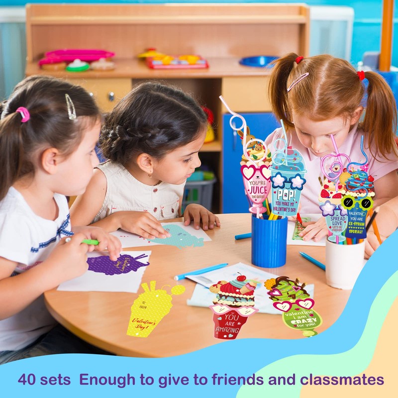 - Valentine's Day Gift Set: the package includes 40 reusable crazy straw and 40 juice Valentine's Day cards, enough as a small gift to your classmates or friends, or as the cool party favor to surprise your guests impression
