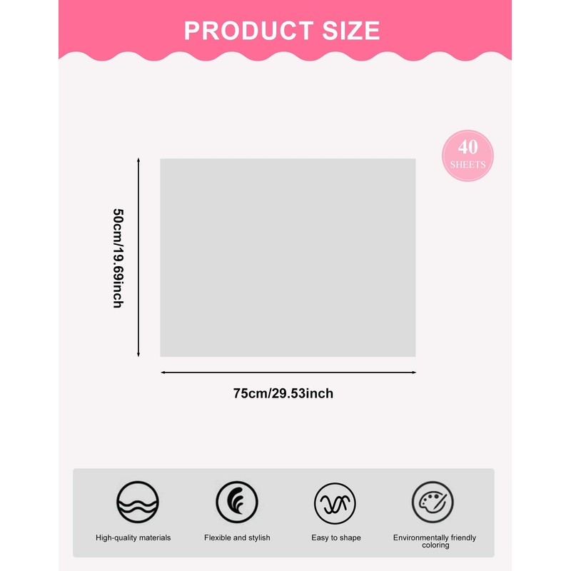 - Size: Each sheet measures 75 x 50 cm (19.6 x 27.5 inches), a practical size for florists, gift wrapping and DIY projects. Whether you're wrapping a small gift or a delicate bouquet, this size is easy to handle with no waste