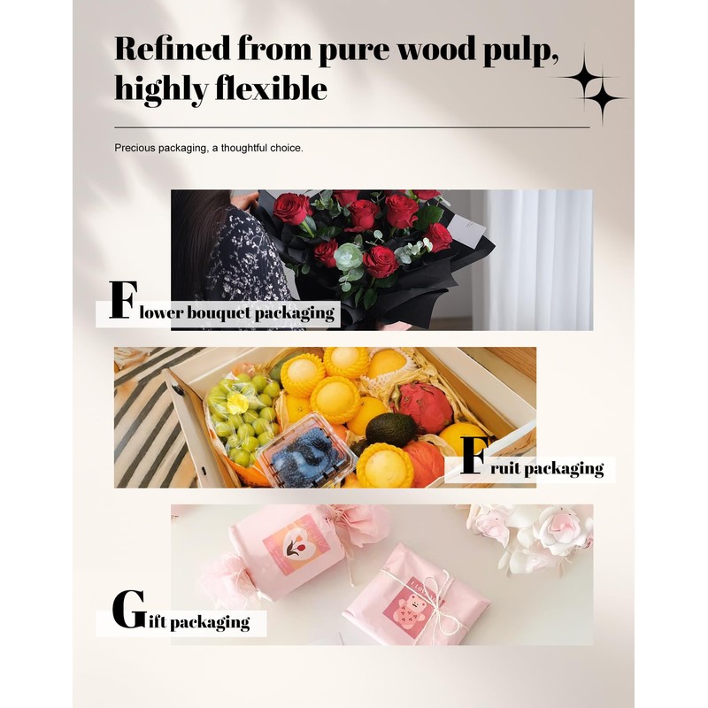 - Easy to use: Designed with ease in mind, this wrapping paper is ideal for florists, gift wrappers and DIY craft enthusiasts. No need to worry about complicated cutting or measuring, just grab a sheet of paper, wrap your flowers or gifts, and you're done! It's a quick and easy solution to make your floral arrangements and gifts look even more amazing