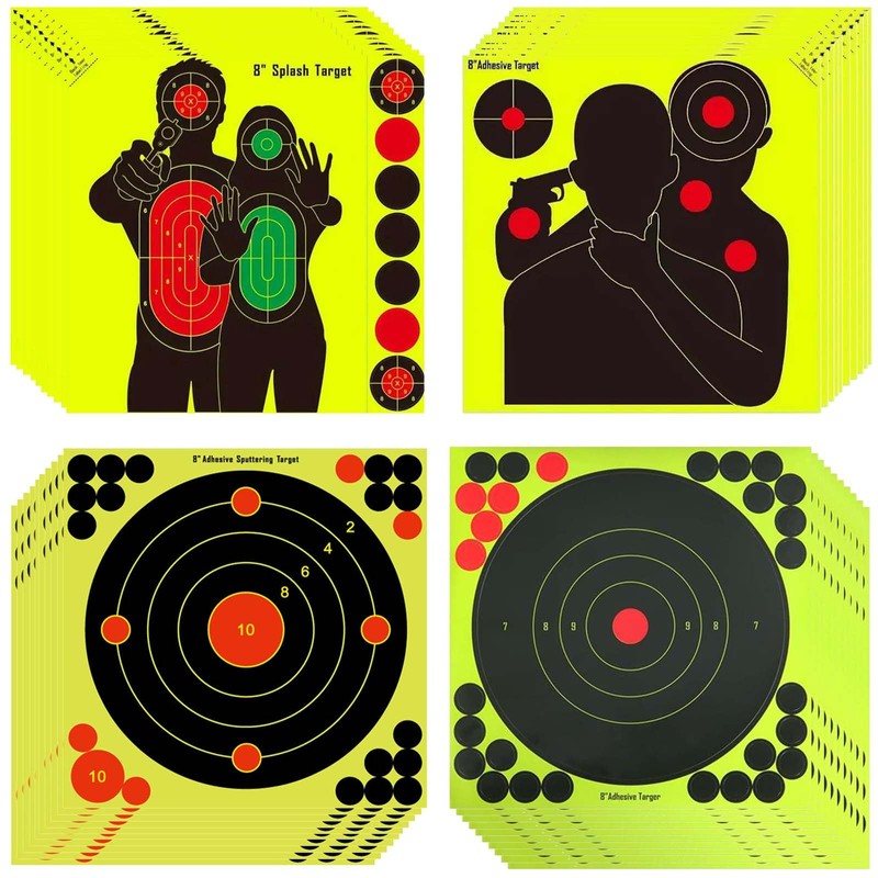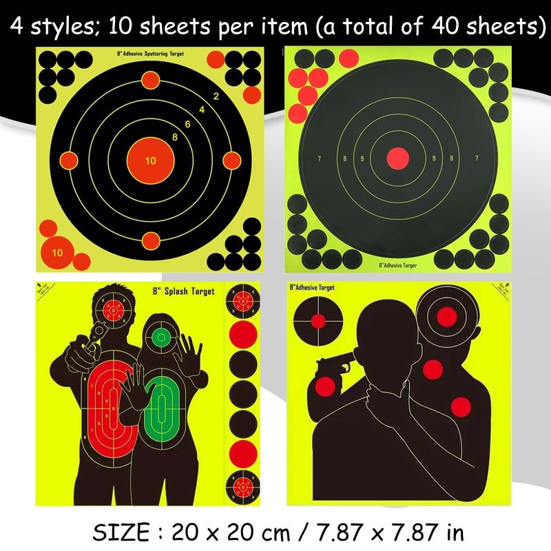 40 Sheets Reactive Shooting Target, 8 in Bullseye Reactive Shooting Target,Where you hit turns bright yellow, Shooting Targets Suitable for shooting training pre match training Self adhesiv(4 Styles)