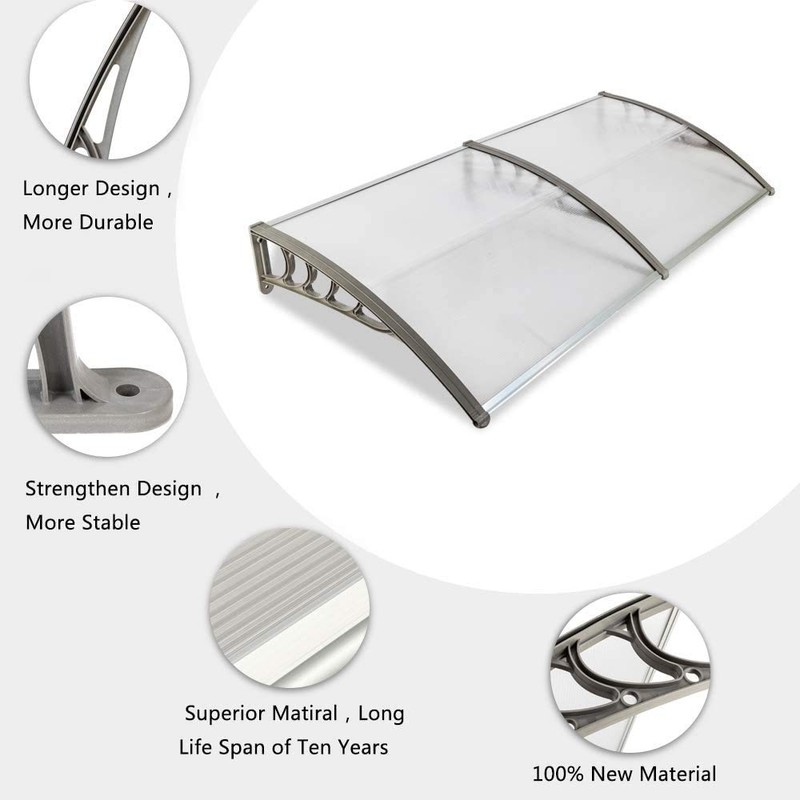 40" X 80" Patio Door Window Awning Canopy Cover Home Front Door Window Hollow Sheet Rain Cover Outdoor Polycarbonate Eaves Canopy Cover UV Rain Snow Protection (White Board & Gray Bracket)