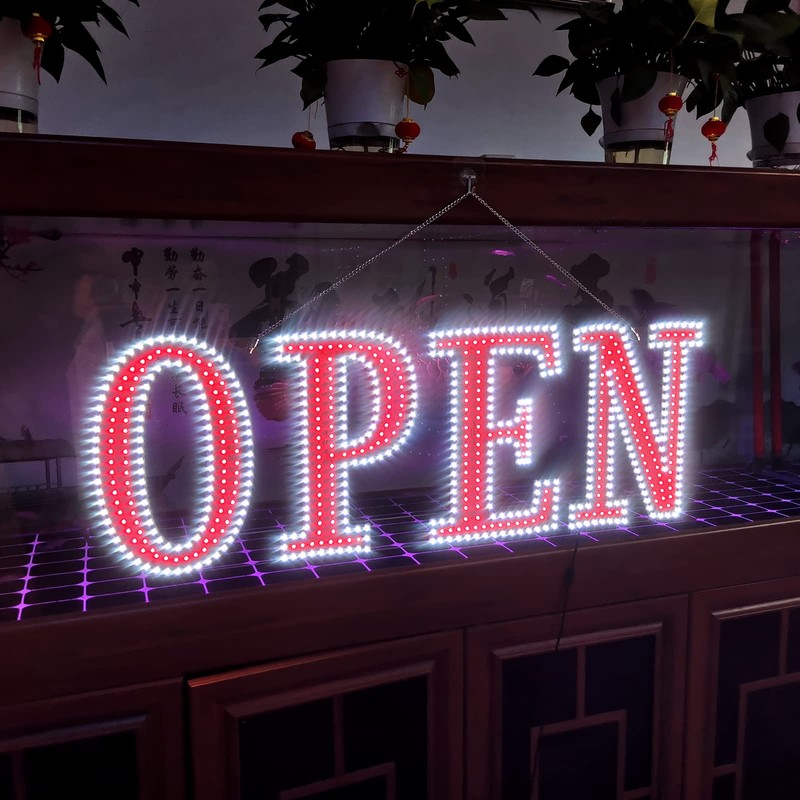 - Easy To Install - This open sign includes a sturdy chain for hanging and easy to install on any storefront, glass door or window. Equipped with power adapter, plug and play.