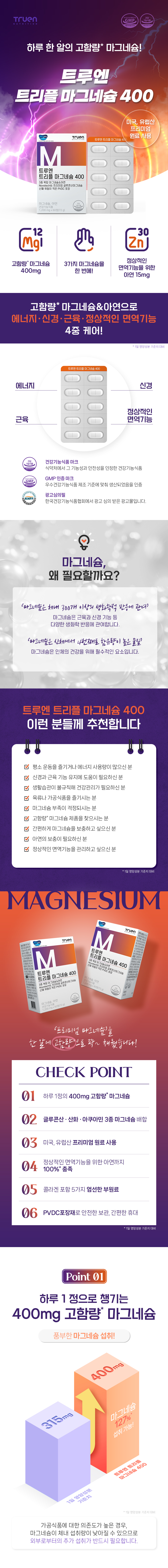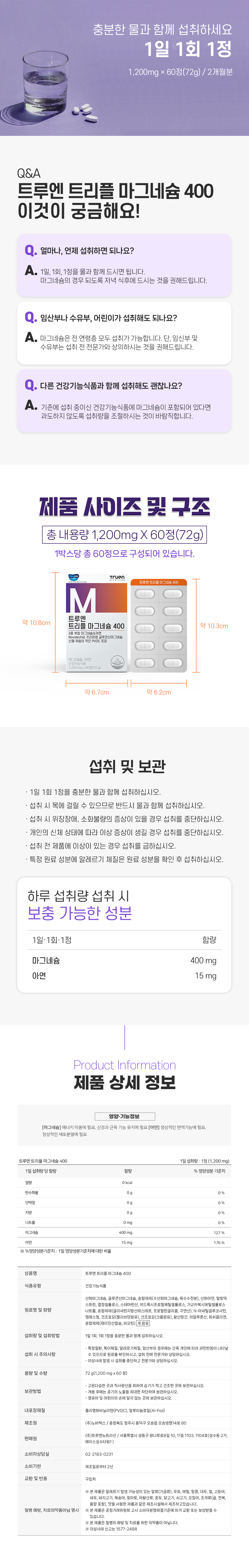 트루엔 트리플 마그네슘 400 60정 Trueen Triple Magnesium 400 60 Tablets