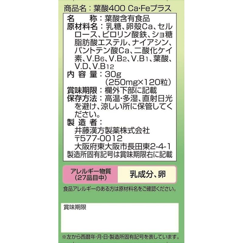 井藤漢方製薬 葉酸400 CaFeプラス×3個