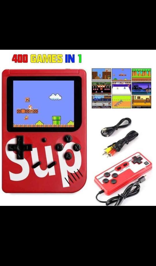 The Sup 400 In 1 Games Retro Handheld Game Console is perfect for gaming on the go! With a massive library of 400 classic games, you'll never run out of options. Key Features: - Handheld console design for gaming on the go - Includes a remote control for two-player gameplay - Pre-loaded with 400 classic games Take your gaming experience to the next level with this console's included remote control, allowing you to enjoy two-player gameplay. And with its compact and portable design, this handheld console is perfect for long car rides or waiting in line. Additionally, this retro game console comes pre-loaded with an impressive library of 400 classic games, providing hours upon hours of entertainment and nostalgia. Upgrade your retro gaming experience today and get your hands on the Sup 400 In1 Games Retro Handheld Game Console!