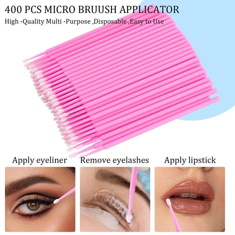 400 PCS Micro Applicator Brushes Disposable Eyelash Extension Microswab Mascara Wands Brush For Lash Remover Brush Tools Pink, Fine(2.0mm)