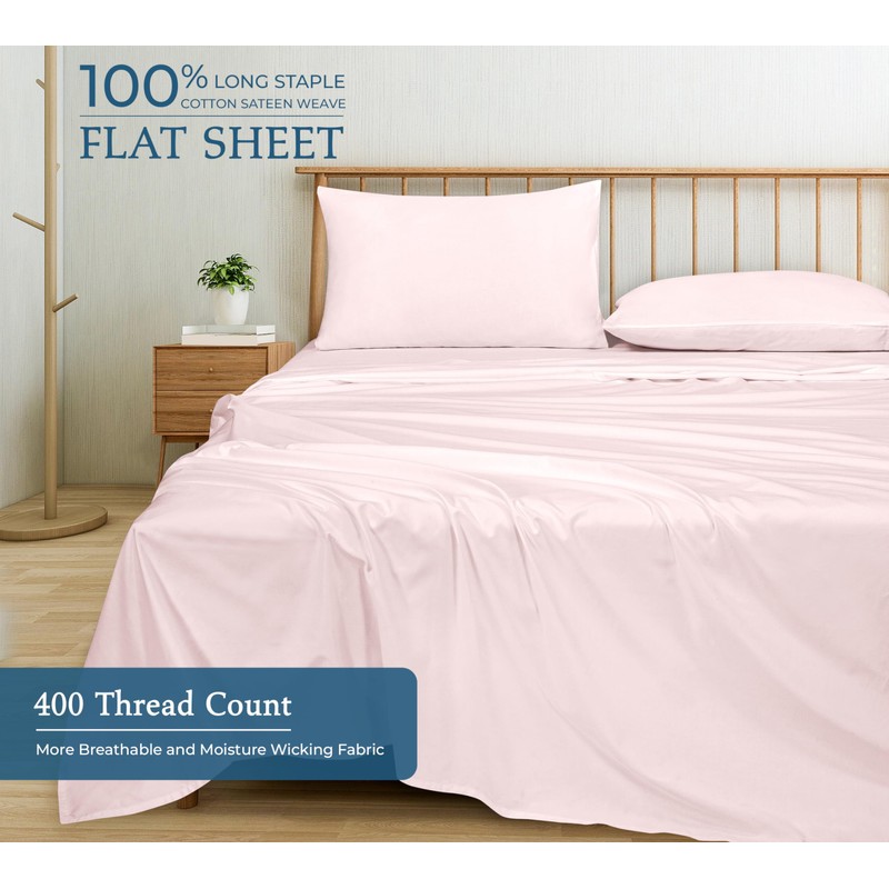 400 Thread Count 100% American Grown Cotton Pink Flat Sheet Only - Cooling Sh...