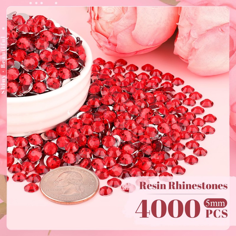 - 💎PACKAGE CONTENT -- The package contains approx. 4000 pcs of 5mm-SS20 (0.20") bling-out resin rhinestones (Red). The large amount will support you to fulfill a number of your wonderful DIY decoration ideas. Additionally, 1 tweezers and 1 pickup pen are included for easily picking up of glittering gems.