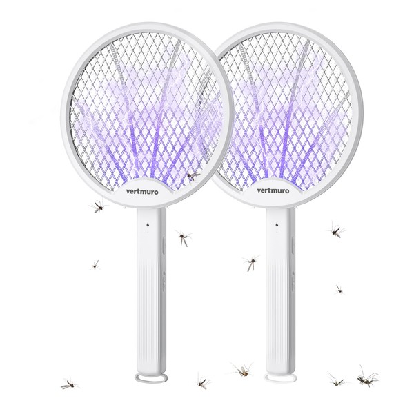 2PCS Electric Fly Swatter 4000V, 2-in-1 Foldable Bug Zapper Racket, Fly Zapper Mosquito Zapper Flies Killer with USB Rechargeable Battery, UV Light, Mosquito Killer Zapper Flies Killer Indoor Outdoor