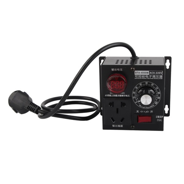 Output voltage: 0-220V infinitely adjustable (the voltmeter will not work if the output voltage is lower than 5V) Current: 18A Package weight: approx. 507 g.