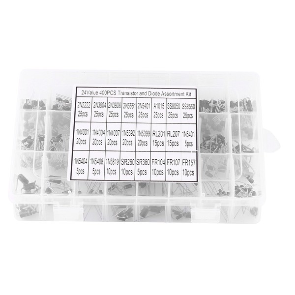 - There are total 400 transistors and diodes in 24 values in this set which will meet you basic needs.