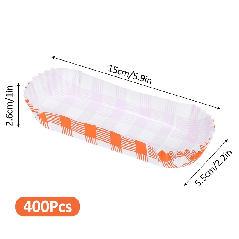 - Bulk Quantity: the package comes with 400 pieces of paper hot dog trays, perfect for serving hot dogs, fries, vegetables, salads, fruits or serving other small food items. Hotdog trays disposable sets can meet your home kitchen or party food serving needs