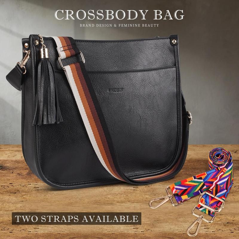 4053 Women's Elegant Crossbody Bag For Women Leather Hobo Handbag Wallet Set With 2count Adjustable Guitar Leopard Strap hkclufbag crossbody purses 2025:_Black