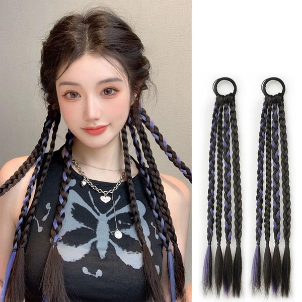 エクステ ポニーテール ヘアエクステ 四つ編み カラー エクステ 編み込み 娘 ダンス 発表会 キッズ イベント エクステ ンション ポニーテール 付け毛 ツインテール 40cm 2本セット ダークブラウン&ピンク