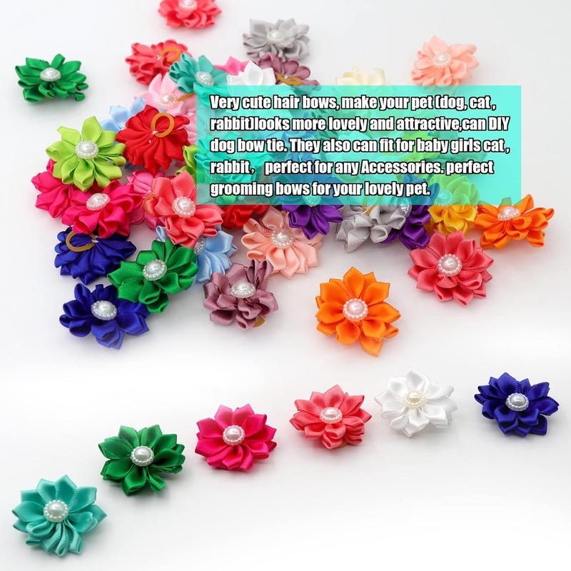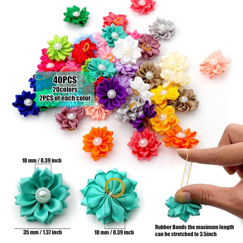 40count(20Paris) Cute Dog Hair Bows with Rubber Bands Pearls s Topknot Dog Bows Pet Grooming Products 20 Colors