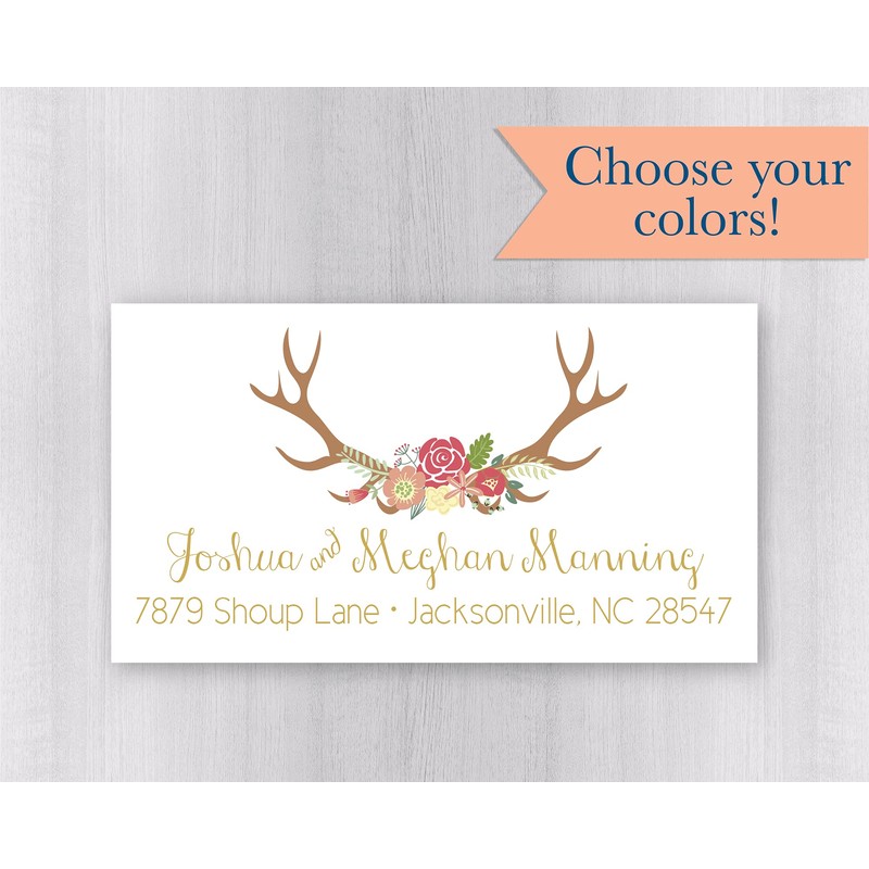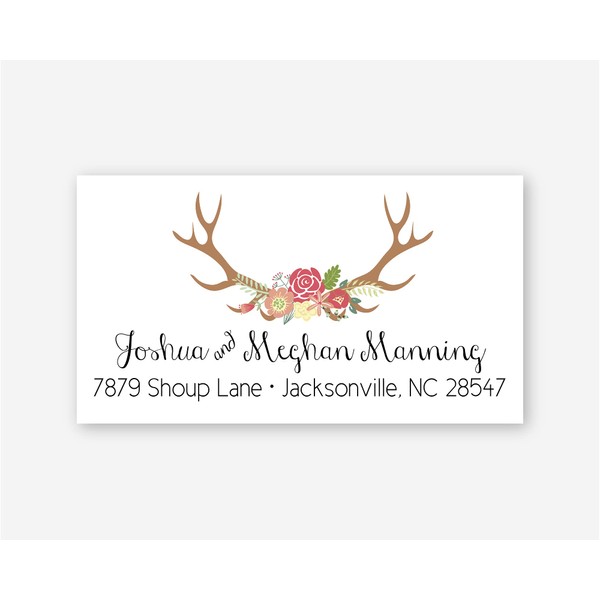 40ct - Deer Antler Address Labels, Christmas Card Return Address Stickers (#358-L-WH)