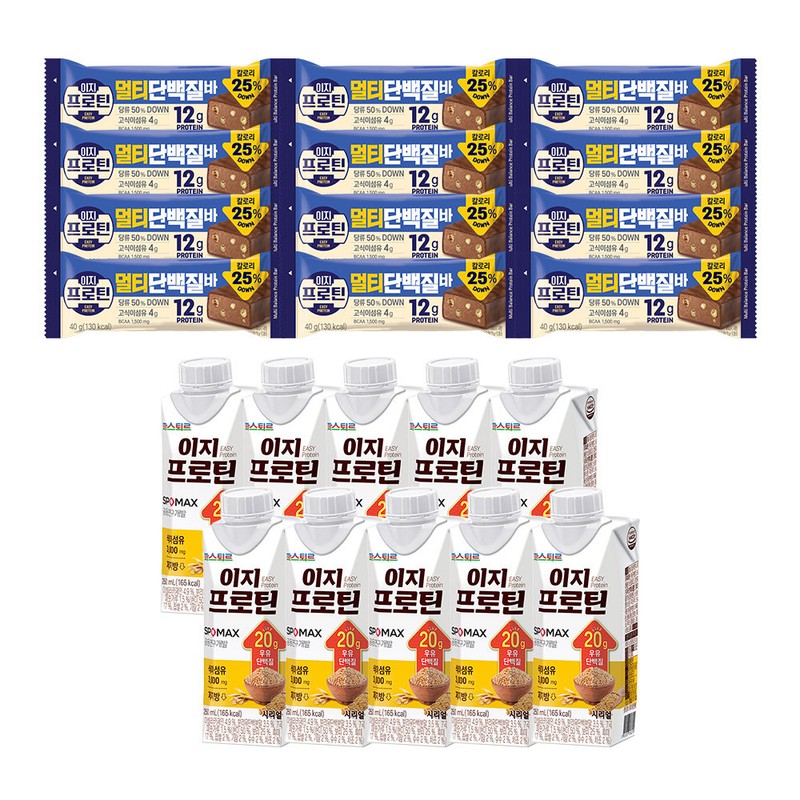 롯데웰푸드 이지프로틴 멀티단백질바40g X12개+씨리얼드링크 250ml X10개