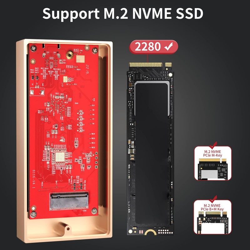 - 【SSD and Device Compatibilities】The M.2 Enclosure support up to 4TB, only for 2280 M.2 NVMe SSD. Supports Mac and Windows and Linux systems. This NVMe enclosure Thunderbolt 3 compatible adopts dual master control, which provides more comprehensive compatibility. Supports Thunderbolt 3/4, backwards compatible with USB3.2X2, USB3.1, USB 3.0.