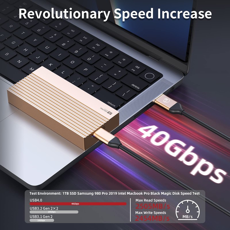 - 【Get the Blazing Speed】With USB 4.0 Type-C output interface, it supports the maximum transmission speed up to 40Gbps. Speed test with Samsung 970 EVO Plus on Macbook Pro 2016, Read / Write speed reach up to 2700MB/s / 1400MB/s. You can handle your multimedia files, like HD video, photos, and music, or making post-production and editing footage at any time, and quickly export in an efficient workflow.