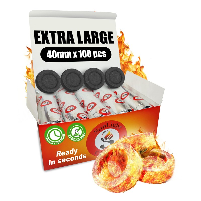 - BIGGER IS BETTER: Sunlight Charcoal's NEW 40mm size. Each one of these charcoal discs is much larger than the 33mm. They offer a wider surface area, providing a longer burn time and more space to put incense.