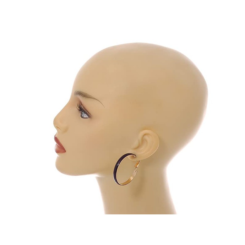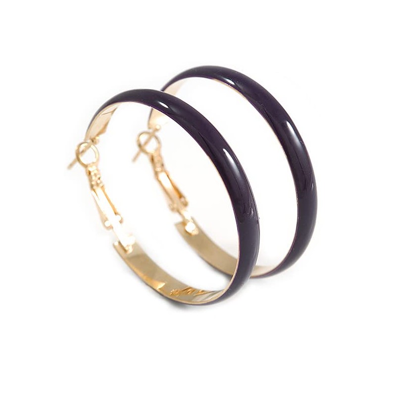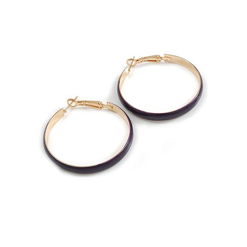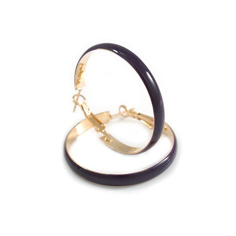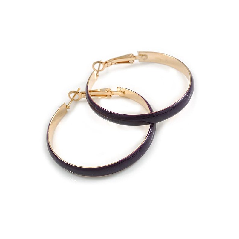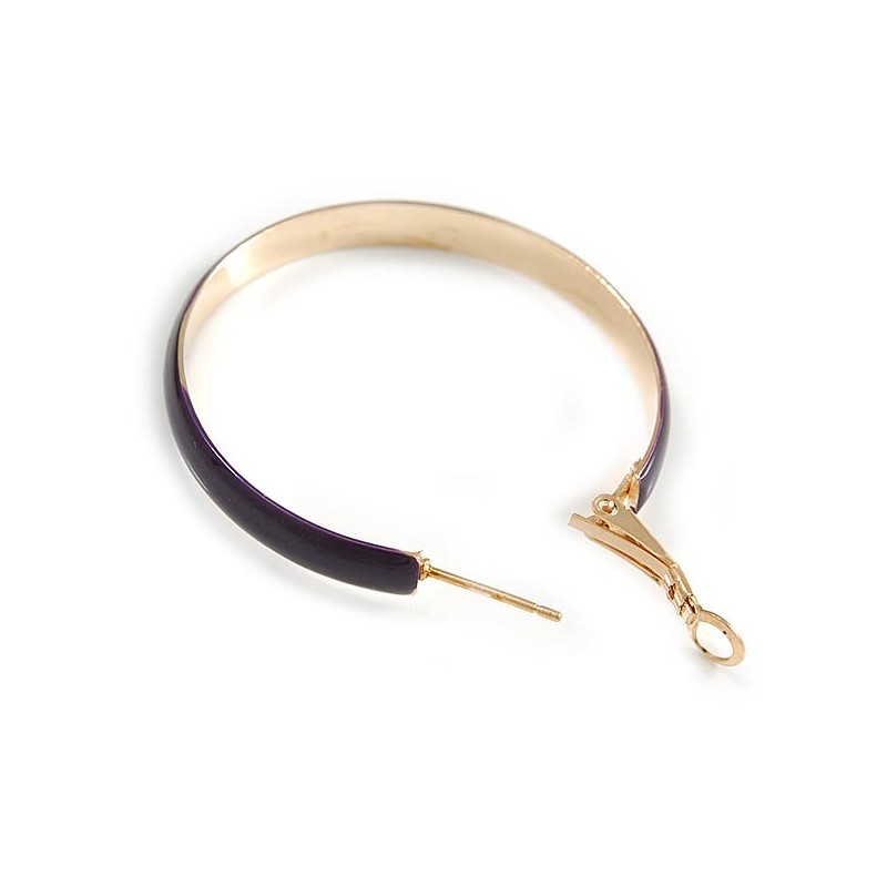 40mm D/Wide Purple Enamel Hoop Earrings In Gold Tone/Medium Size
