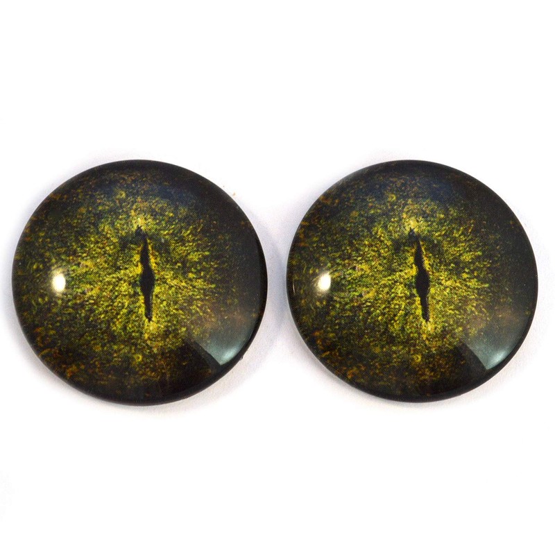 40mm Dark Green Alligator and Crocodile 2 Pair Bundle Large Glass Eyes Animal Faux Taxidermy Art Jewelry Supply Wire Wrap Needle Felting Clay Creature Craft Sculpture