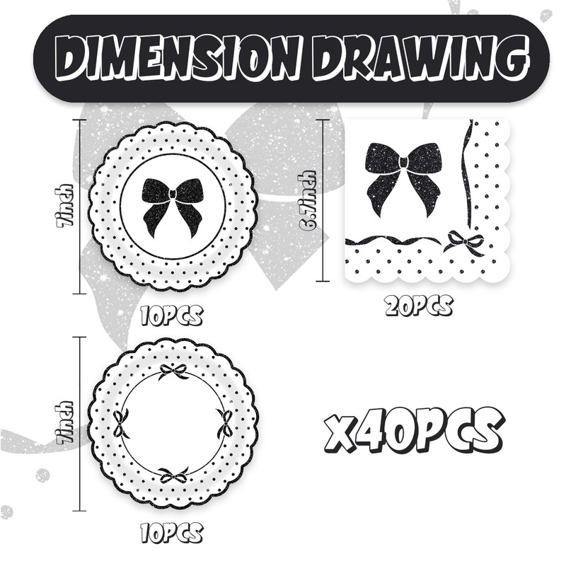 - Suitable for occasions: dessert plate and napkin set is suitable for Black Bow themed parties,Bow Knot Bachelorette themed birthday parties,Baby Shower,Graduation parties, trips, etc. which will make your party more Interesting and attractive, and leave deep memories for your guests and more compliments.