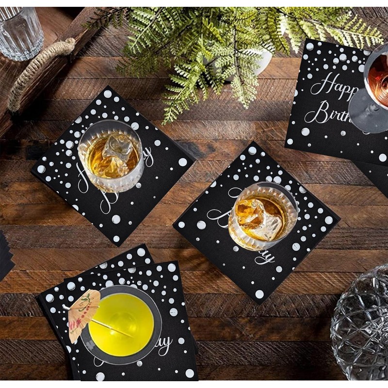 40pcs Black Silver Happy Birthday Napkins,Disposable Tableware Dinnerware Cocktail Napkins for Women and Men Birthday Party Decoration