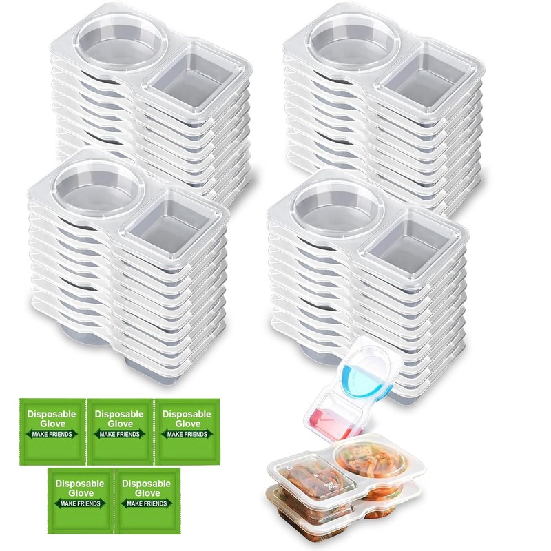 40Pcs Double Compartment Condiment Container with Lids 2 Compartment Snack Containers Reusable Snack Pack Containers Double Condiment Container for To-Go Sauce, Food Travel Snack,Sampling (Model 2)