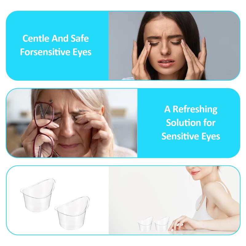 - 【Usage Tips】When using the eye wash cup, simply place the saline eye wash cup over your eyes and tilt your head forward. As you tilt back and move your eyes, the liquid will gently rinse them. Repeat this process to relieve redness and discomfort caused by wearing contact lenses for a long time.