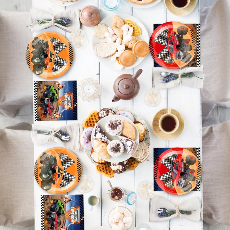 - 【Serves 20 Guests】The monster truck disposable dinnerware comes with 7" monster truck plates *20, 6.5" napkins (4 layers)*20 .This plates set features all monster truck party theme elements. You can easily create a monster truck birthday party atmosphere for your kids and family.