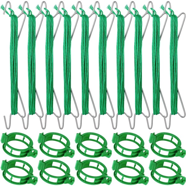 - Package: You will get 20pcs green tomato hooks with string & 20pcs Plant Support Clips, garden clips has 1.2-inch round hole is convenient for better fixing vines, beans and stems and other plants, tomato holder hooks with 33.3ft Twine