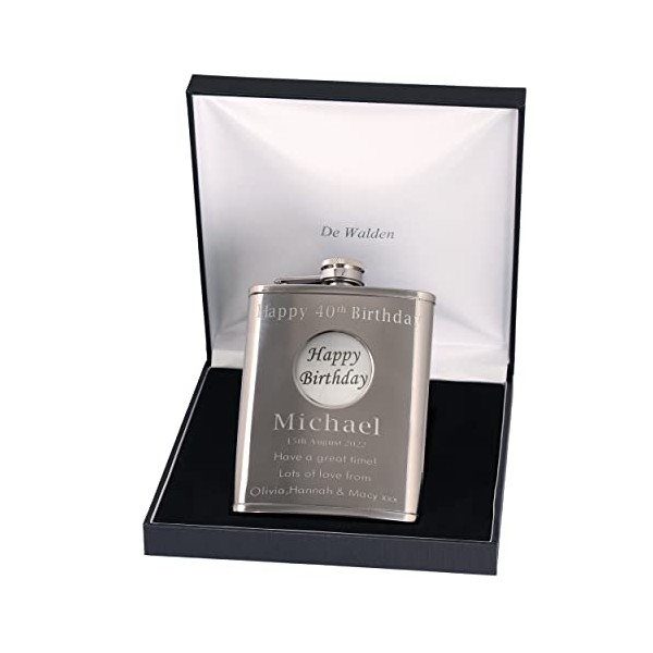 40th Birthday Engraved Hip Flask Happy Birthday Feature in Gift Box