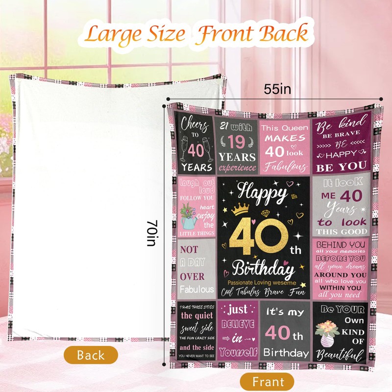 - 【40th Birthday Gifts for Women】Happy 40th Birthday! Turning 40 is a major milestone, a moment to celebrate all the experiences, wisdom, and joy life has brought. This super-soft flannel blanket is the perfect way to express love and warmth on this special occasion. Ideal for 40th birthday parties, it makes a thoughtful gift for women in your life, such as mothers, wives, sisters, aunts, grandmothers, and friends.