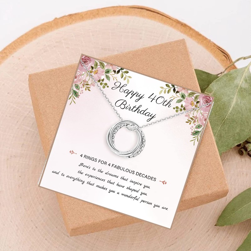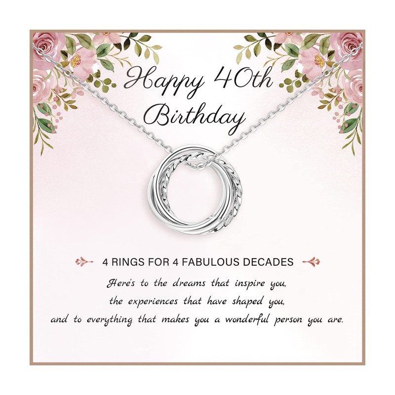 - 40th birthday gifts for women: A meaningful and beautiful piece of jewelry to celebrate 4 wonderful decades of life. Featuring interlocking circles pendant, representing unity, protection, gratitude and strength. A high-quality piece of jewelry for everyday wear. 4 decade necklace that she will treasure for many years to come.