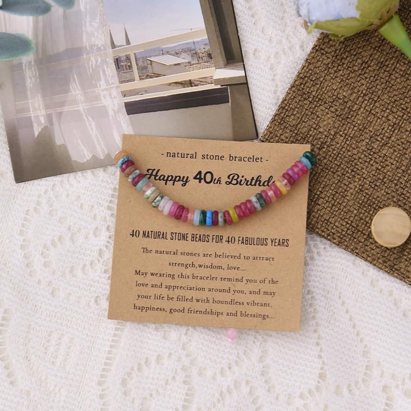 - 40th Birthday Card for Women: The 40 years old card says " The natural stones are believed to attract strength, wisdom, love...May wearing this bracelet remind you of the love and appreciation around you, and may your life be filled with boundless vibrant, happiness, good friendships and blessings...", great women have no fear of age, and everyone"s life is as colorful as the bead bracelets, 40th birthday gift for mom from daughter son, 40 years old birthday gifs for women aunt