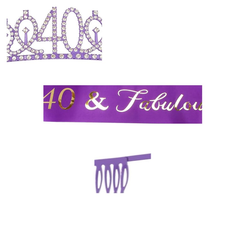 - The Perfect 40th Birthday Decorations for Women:Sash Made from glitter gold fabric using hot pressed stamping foil will compliment any outfit and durable enough to last day into night. Rhinestone tiara perfect for the birthday party use, makes the most stunning at any occasions decorated for the special birthday girl.