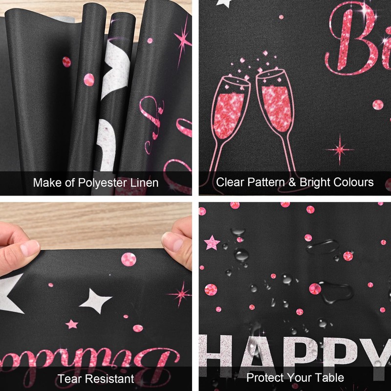 - 【CONVENIENT TO USE】: This birthday table runner can protect your dining table from unexpected scratches, stains, spills, wear and tear while decorating the kitchen, party and banquet.The linen material is not easy to get dirty, so you can usually clean it by wiping it with a cloth.And this tablecloth is machine or hand washable.