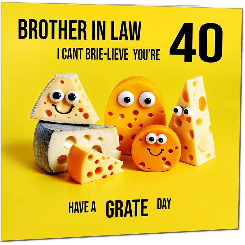 40th Brother in Law Birthday Card - Cheese Pun Funny Brother In Laws Birthday Card for 40 Year old forty, fortieth