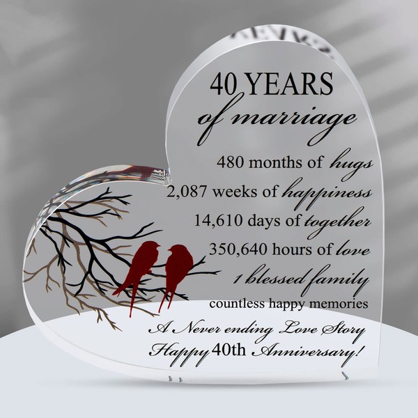 - 💞 Celebrate 40 Years Of Marriage: what better way to celebrate spending half a century with the love of your life than with this super cute acrylic heart anniversary gift? A heartwarming keepsake to honour all these years of love and commitment.
