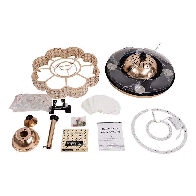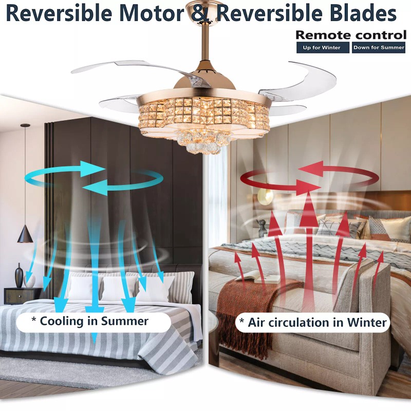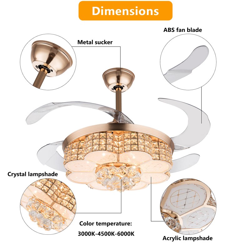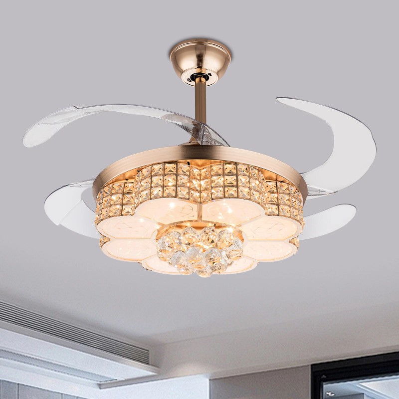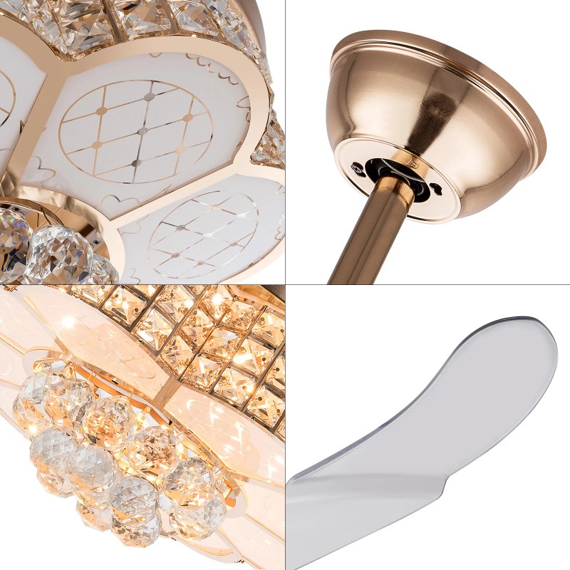 42" Modern LED Ceiling Fan Light Golden Chandelier Lamp 6-Speed w/Remote Control