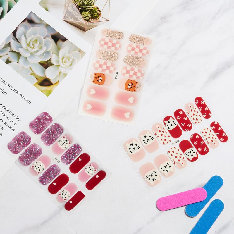 - 【Package Contents】You will get 42pcs 3sheets full wrap nail stickers for nails supply.And there is 1 piece nail file in the pack, which is enough to fit most people's fingers and allow you to design a variety of styles of nail works