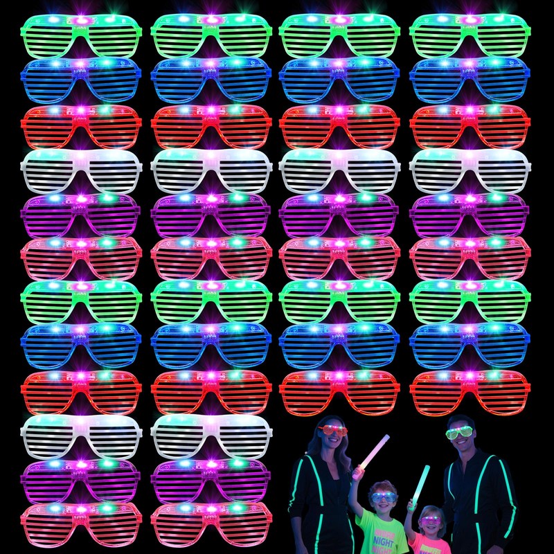 - ✨Vibrant 6-Color Variety & Bulk Pack – Includes 42 LED glow glasses in 6 eye-catching colors (white, red, green, purple, blue, pink) for group events, party favors, or sharing. Endless style options to match any theme, from birthdays to festivals, ensuring everyone stands out in the crowd.