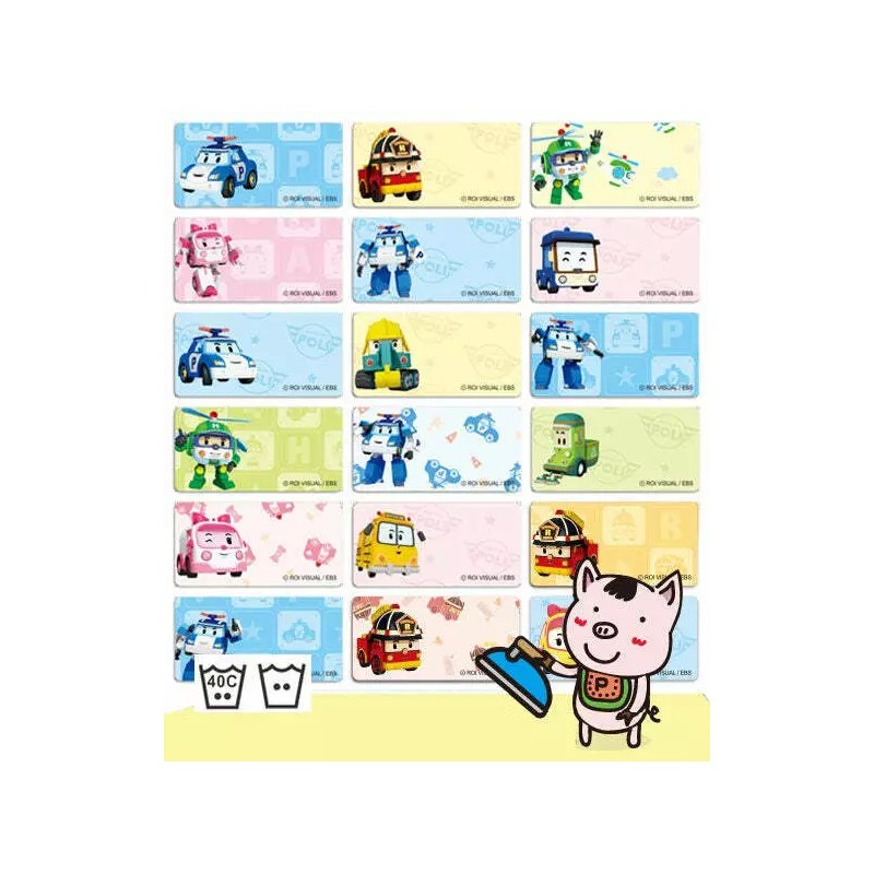 42 Personalized Kids Name Iron On Fabric Labels Stickers - Robocar Poli