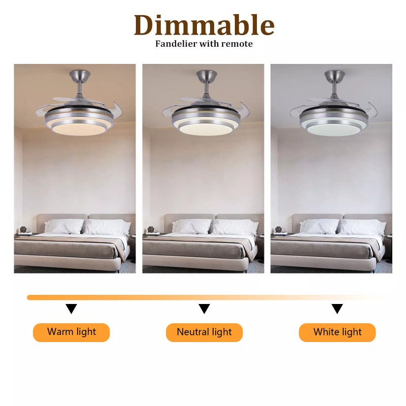 42" Retractable Ceiling Fan Lamp Dimmable LED Chandelier w/ Light Remote Control