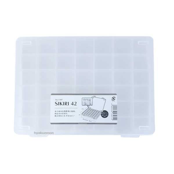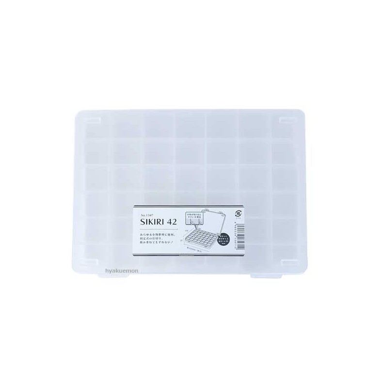 42 small compartments (fixed partitions), External dimensions 9.2 x 6.7 x 0.8 inches (23.3 x 17 x 2.1 cm)